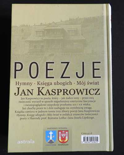 Poezje Hymny.Ksiega Ubogich.Moj Swiat by Jan Kasprowicz 2015 published by Wydawnictwo Astria Krakow. Polish Language. Hardback 445 pages. As new condition. As seen in the images.